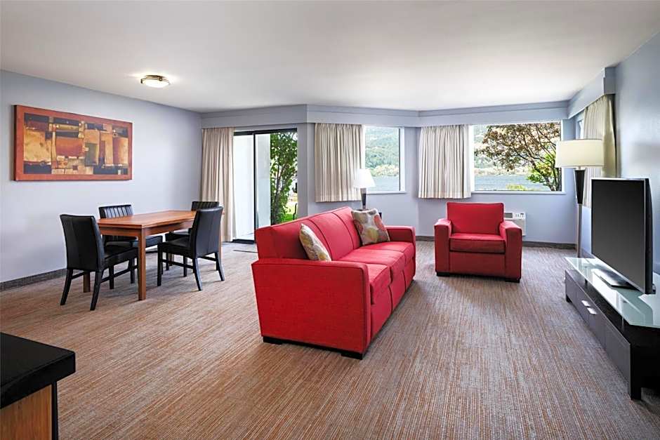 Located on the top floor of the east wing of the hotel, this room offers views of the Columbia River and private balconies. A 46-inch flat-panel TV, microwave, mini-refrigerator and a coffee maker is also included. The bathroom offers a shower only. Pool towels are provided as well. Guests under 21 are not permitted in this room type.
